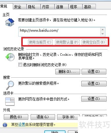 14、 主页下方按钮变为灰色不可用状态,有效防止IE首页被随意更改,确保首页设置稳定。
