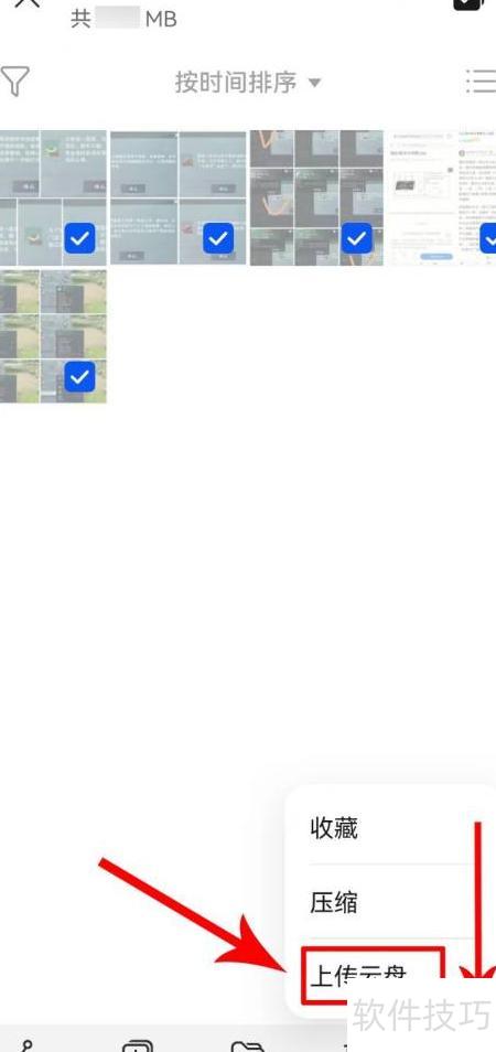 - 选好照片后,点击右下角的上传云盘按钮即可。