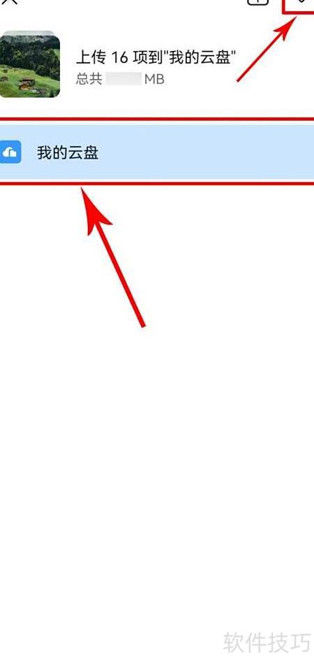 - 进入我的云盘,选定上传文件的存储位置