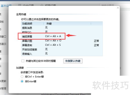 按下屏幕捕捉按钮,输入A字母,设定快捷键Ctrl+Alt+A,轻松快捷截取屏幕画面。