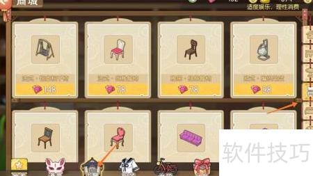 - 进入商城后,点击底部小屋,再选择右侧的椅子图标。