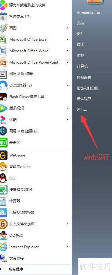 - 启动电脑后,点击开始菜单中的运行选项,进入其主界面。