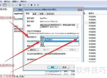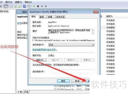 若要将Application Identity服务设置为手动启动,首先进行前五个步骤的设置。接着,在第五步中,从下拉选项中选择手动模式,然后继续执行第六步操作。通过以上流程,您可以成功更改该服务的启动类型,实现手动配置,确保Application Identity服务按需启动,提高系统运行效率和管理灵活性。