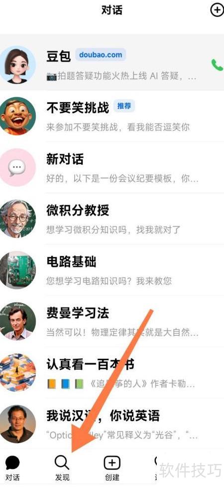 - 打开手机豆包应用,进入发现页面。