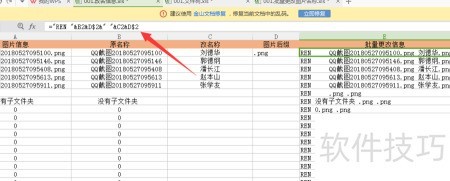 - 在B2单元格输入公式=SUBSTITUTE(A2,.png,),根据图片实际后缀调整扩展名,按回车键后向下填充即可。