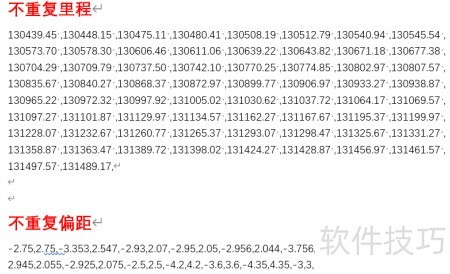 - 用相同方式处理偏距列,最终在Word中生成逗号分隔的里程与偏距数据。