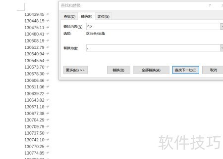将不重复里程数据复制至Word,选择仅保留纯文本;使用^p替换成逗号,生成以逗号分隔的里程数据序列。