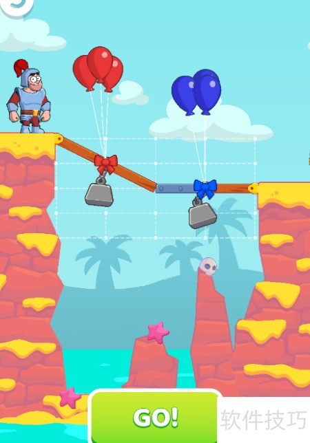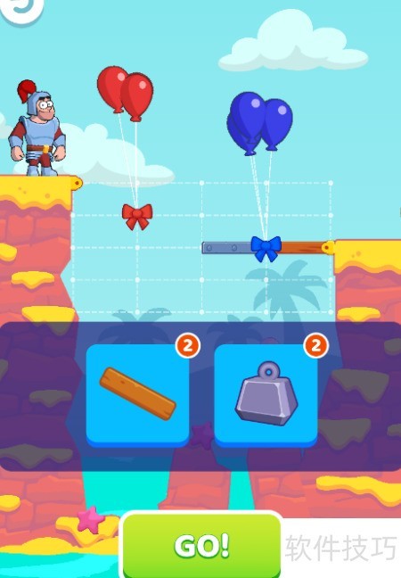 - 按住上方横板向右拖动,对齐蓝色蝴蝶结位置。