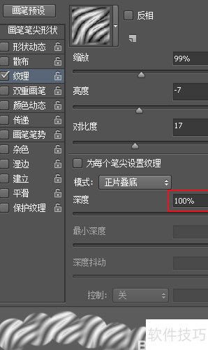 - 将深度调至最高,用画笔在画布上涂抹即可呈现所需纹理。