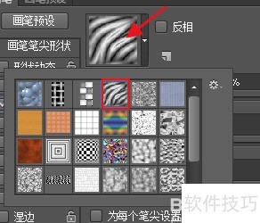 - 在画笔设置面板左侧双击纹理,从图案面板中选取所需纹理。