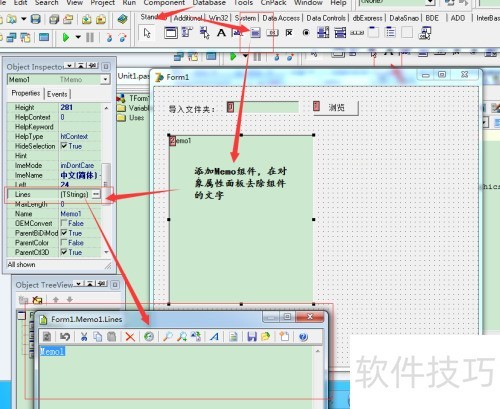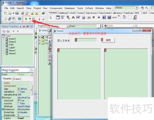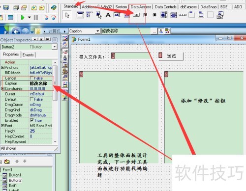 - 在面板上添加标签、按钮和备忘录等控件,合理布局,完成工具界面的窗体设计。