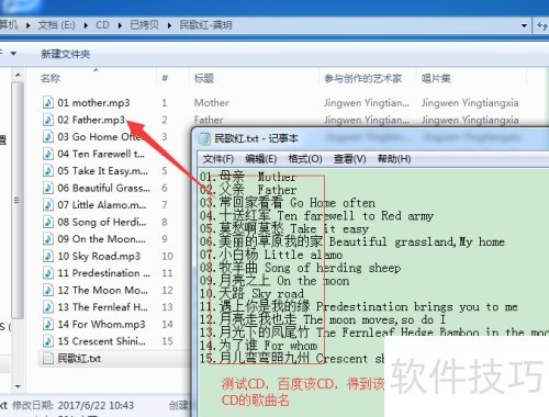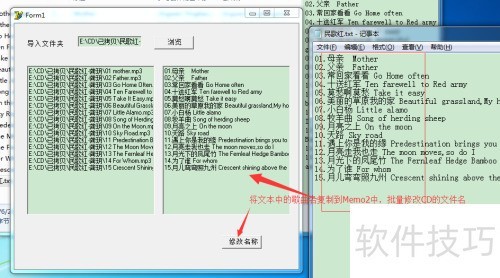 工具编辑完成后,进行性能验证。选取一个已刻录的CD文件夹,从中提取包含音频文件名的文本。将该文件夹与文字信息导入工具,并点击“修改”按钮以启动对话框确认功能运行正常。顺利完成这一环节即表示测试流程完成。