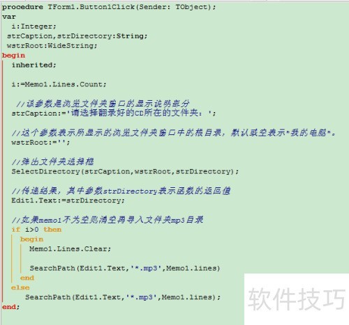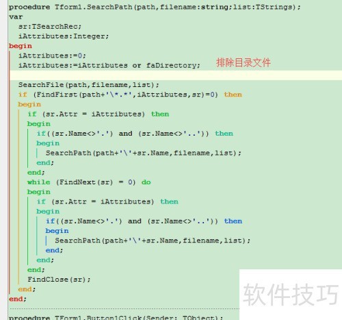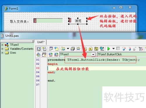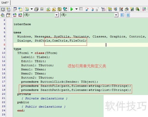 在代码编辑区开头放置单元文件引用,编写查找夹具及文件的两层递归方法。