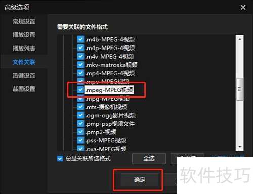 - 勾选MPEG视频选项,然后点击下方确定按钮完成操作。