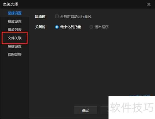 - 进入高级选项,选择左侧菜单中的文件关联设置