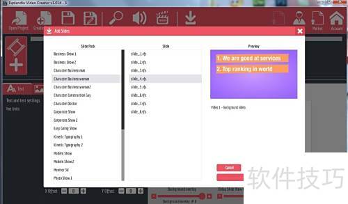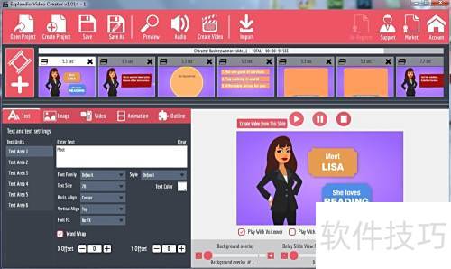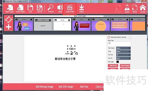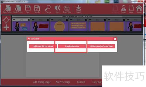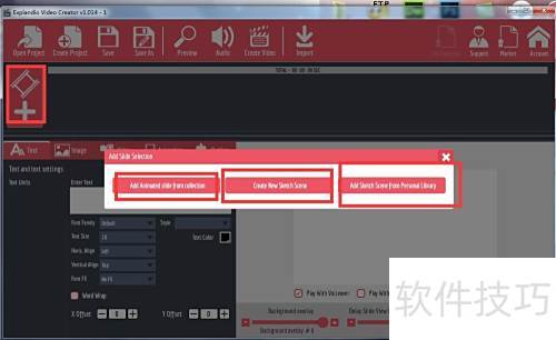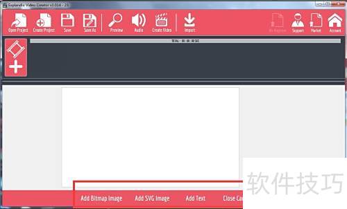 - 启动 Explaindio Video Creator 软件,主界面将显示所示布局。