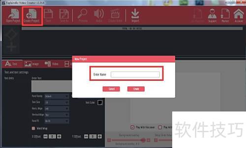 - 制作视频需先创建项目,点击创建项目按钮,输入任意名称即可开始。