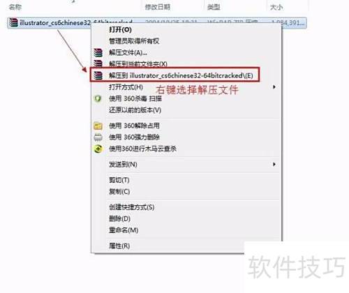 - 将下载的Adobe Illustrator Cs6压缩包进行解压操作,释放其中的安装文件。