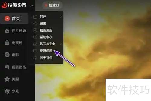 - 启动搜狐影音客户端,点击左上角箭头图标。