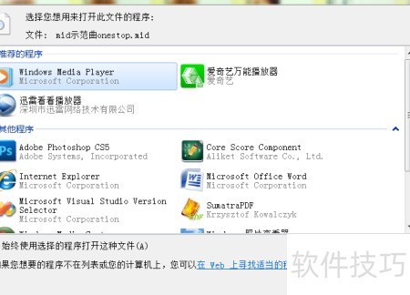 当您遇到未自动关联到媒体播放器的文件时,可以右键点击该文件,在弹出菜单中选择“打开方式(H)”,然后点击“选择默认程序(C)”。在此过程中,请务必在程序列表中选择Windows Media Player并确认。确保勾选“始终使用选择的程序打开这种文件”选项,以避免将来需要重复设置。完成设置后,这类媒体文件将可以直接通过媒体播放器打开,提升使用便利性。
