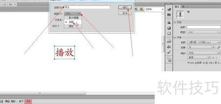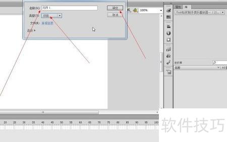 在弹出的对话框中输入元件名称,选择类型后,点击“确定”按钮即可新建按钮元件。