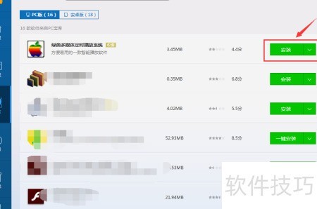 - 在搜索结果中找到绿茵多媒体定时播放器图标,点击进入下一步操作。