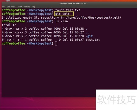 - 打开终端,进入工作目录,执行git init命令完成初始化。