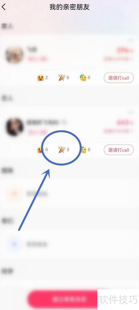 - 进入亲密好友页面,挑选指定关系,查看对方赠送的打call表情包即可。