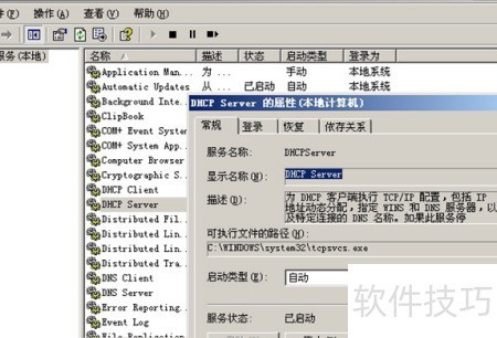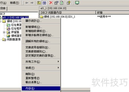 为确保DHCP服务器正常连接网卡,请进行设置:在DHCP服务器界面上,右键点击并选择“属性”进行配置。