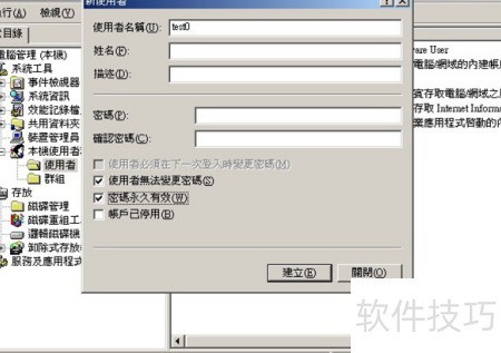 输入用户名 test至 test共随机生成的用户账号),随后点击创建按钮添加用户。