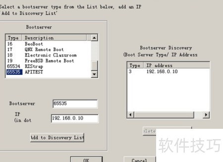 进行设备添加到BootServer发现列表的操作时,首先点击界面的添加按钮,选择对应的设备类型和端口号。将设备的IP地址设为并确保所有信息无误后,点击添加完成。此操作需保证网络连接畅通且参数输入准确,以便顺利添加设备至发现列表。