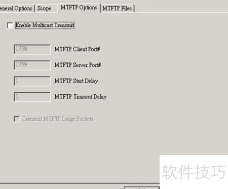 在返回PXE PXE PDK配置程序界面后,选择启动服务器项目并配置启动服务器。点击MTFTP选项卡,取消勾选启用多播传输功能,以关闭多播发送模式。完成设置后,保存更改并退出配置界面,确保网络传输正常。