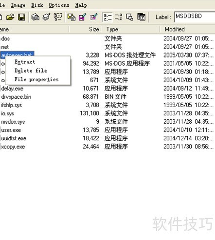 将autoexec.bat从dosundi.件中提取至桌面,操作方法为:右键点击该文件,选择Extract选项,然后指定保存路径为桌面即可完成提取。