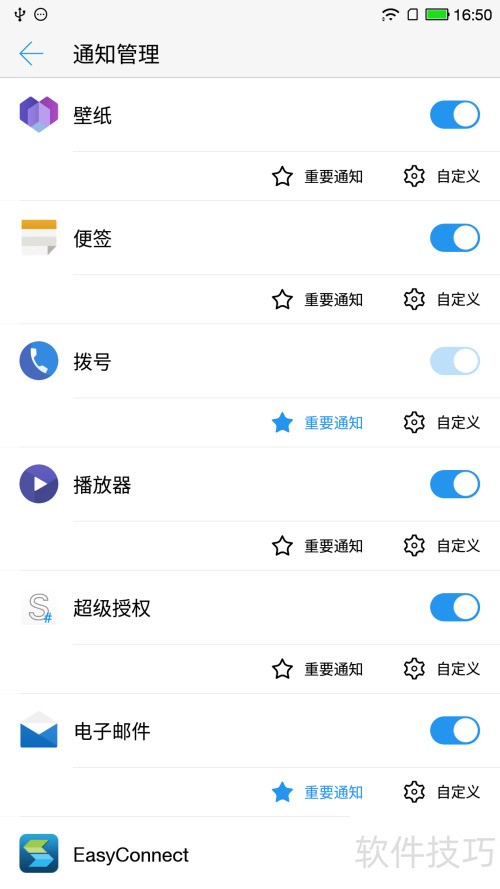 - 点击播放器通知,自定义设置重要通知相关选项。