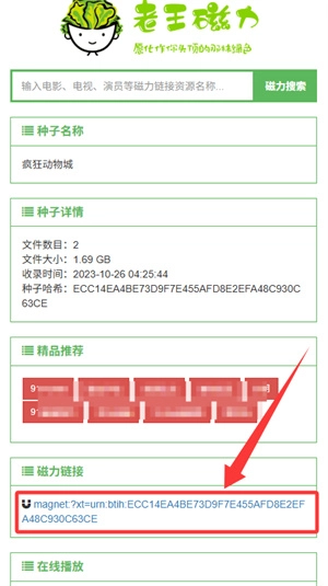 - 打开老王磁力,搜索你要的资源(这里灵宝小编以最新的“疯狂动物城2”为例)