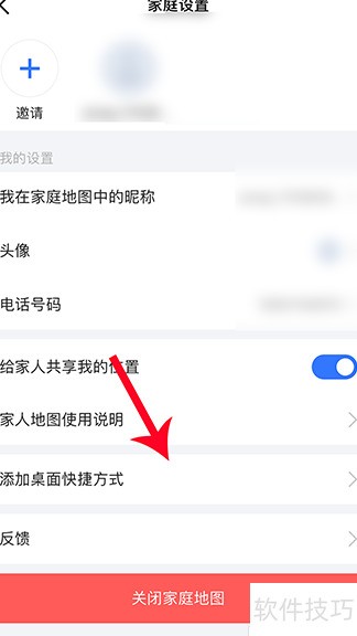 - 点击底部向上箭头,选择添加至主屏幕,家人地图便会出现在手机桌面上。