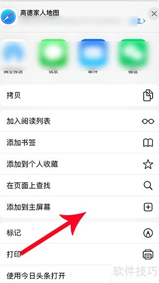 - 点击屏幕下方的向上箭头,选择添加至主屏幕,家人地图便会出现在手机桌面上。