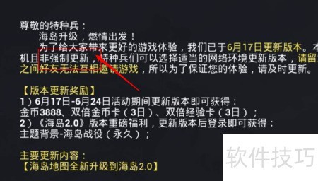 - 进入后可见提示,海岛地图已更新至2.0版本。