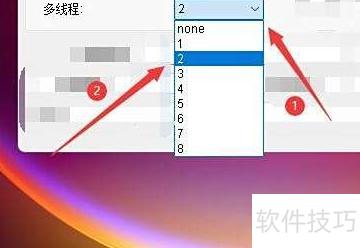 - 在弹出窗口中点击多线程,选择所需数量,例如点击2。