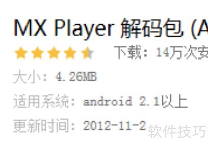 2、 MX VideoPlayer是适用于安卓系统的视频播放软件,下载其APK文件并安装后,播放WMV格式视频时会提示需额外安装解码组件才能正常运行。