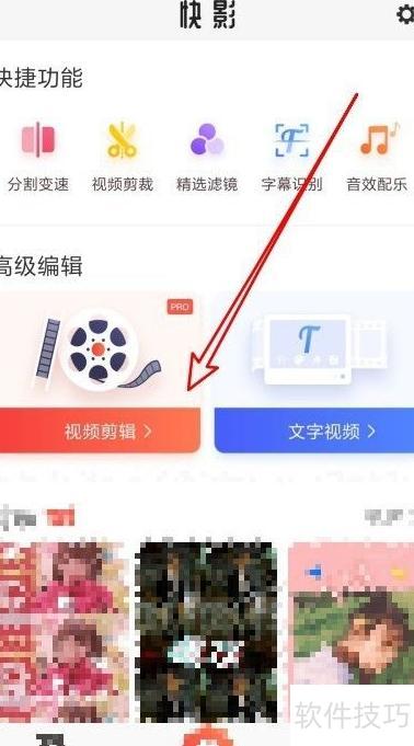 - 进入快影首页后,选择并点击视频剪辑功能选项。