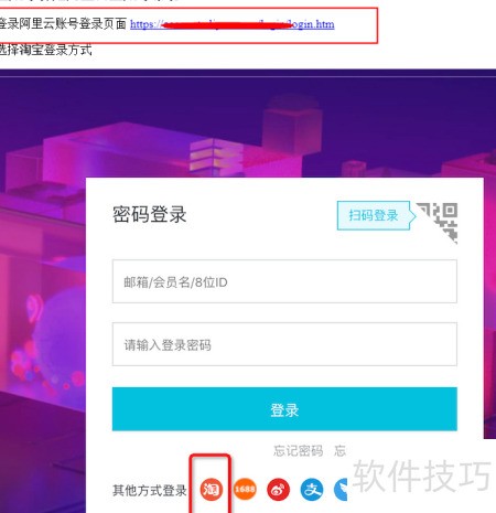 - 登录阿里云,输入淘宝账号即可进入。