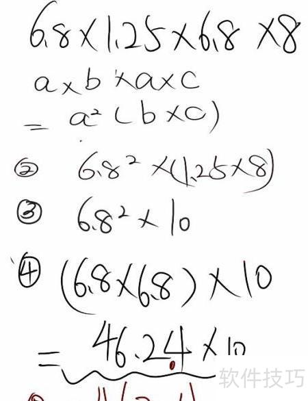 4、 第四步需特别注意,6.8的平方不能拆开计算,必须将小数整体处理,即直接计算6.8乘以6.8的结果。