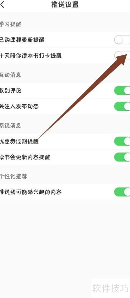 - 进入推送设置,找到十天陪读打卡提醒并关闭该选项。