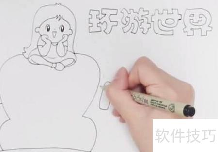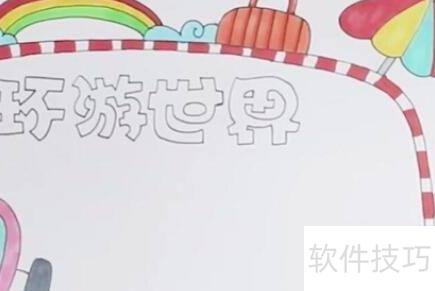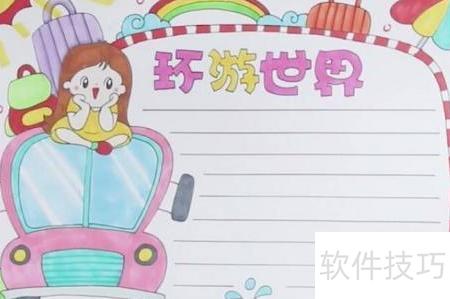 - 先绘制环游世界模板,并在右上角标注环游世界四字。