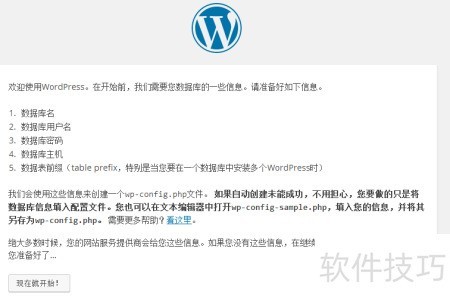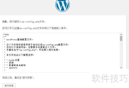 - 若未完成第五步操作,系统将提示无法写入wp-config.php文件。
