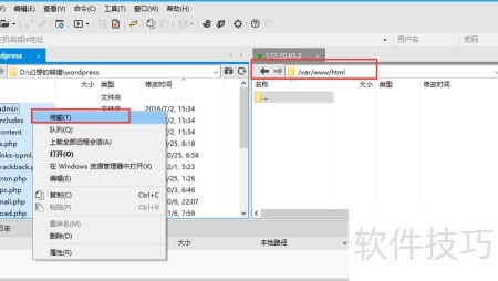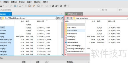 - 把本地电脑的wordpress文件夹传到服务器左边目录
