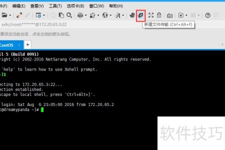 - 点击Xshell 5右上角的文件夹图标,即可启动Xftp 5程序。