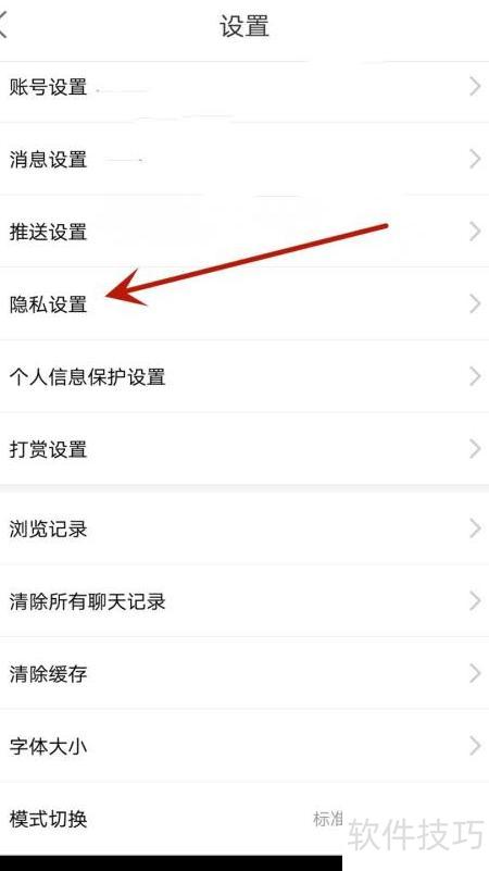 - 点击箭头所指的隐私设置选项