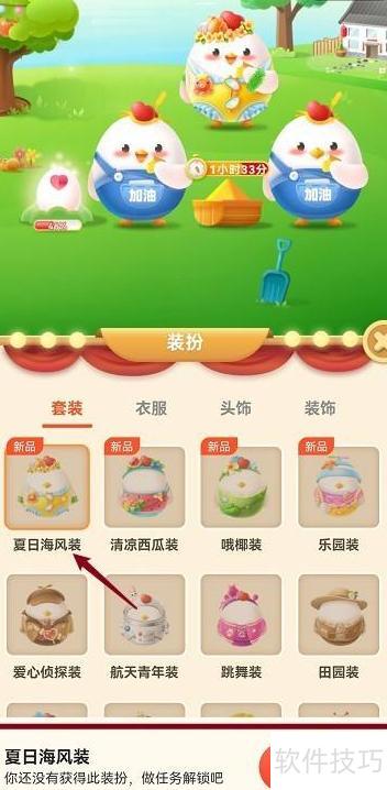 3、 选择夏日海风装,点击前往解锁。